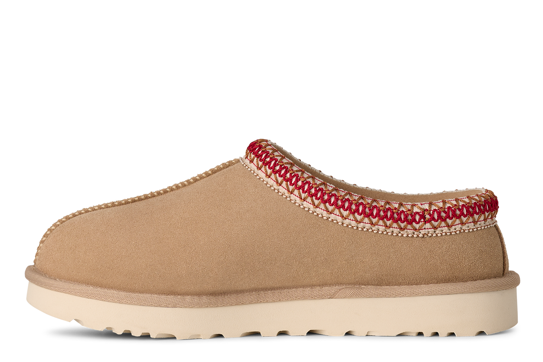 The UGG Women's Tasman Slipper offers versatile functionality with its lightweight rubber outsole, making it suitable for both indoor and outdoor wear. Featuring premium sheepskin lining and embroidered suede upper, this easy slip-on design delivers exceptional comfort and style for any occasion.