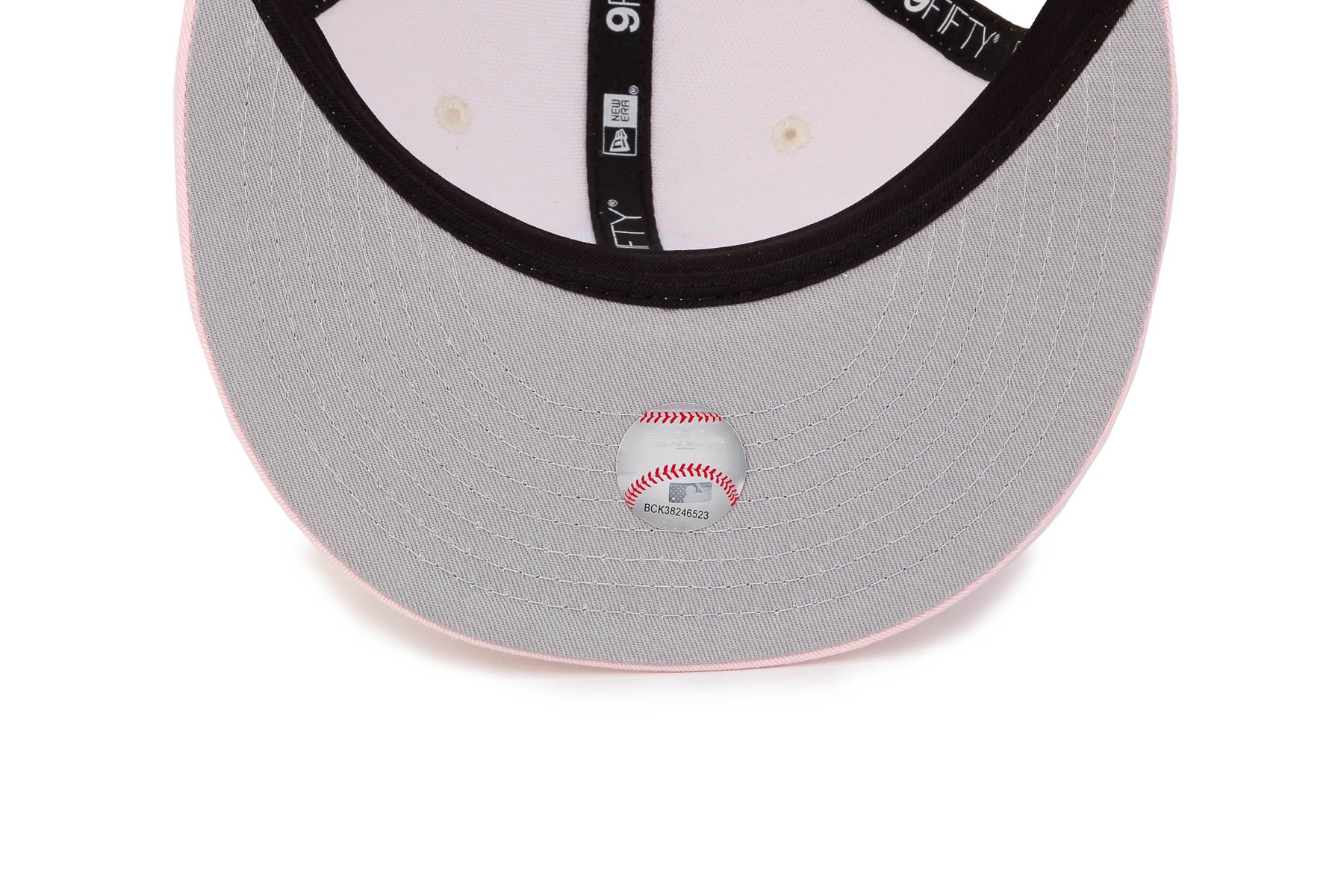 New Era 950 Snapback New York Yankees features an embroidered white and pink outlined NY logo at the front panel, Yankees 1999 World Series side patch. Grey undervisor.