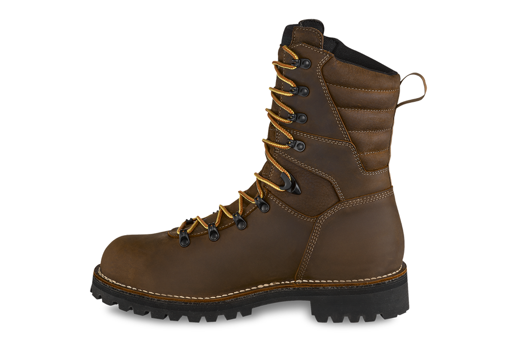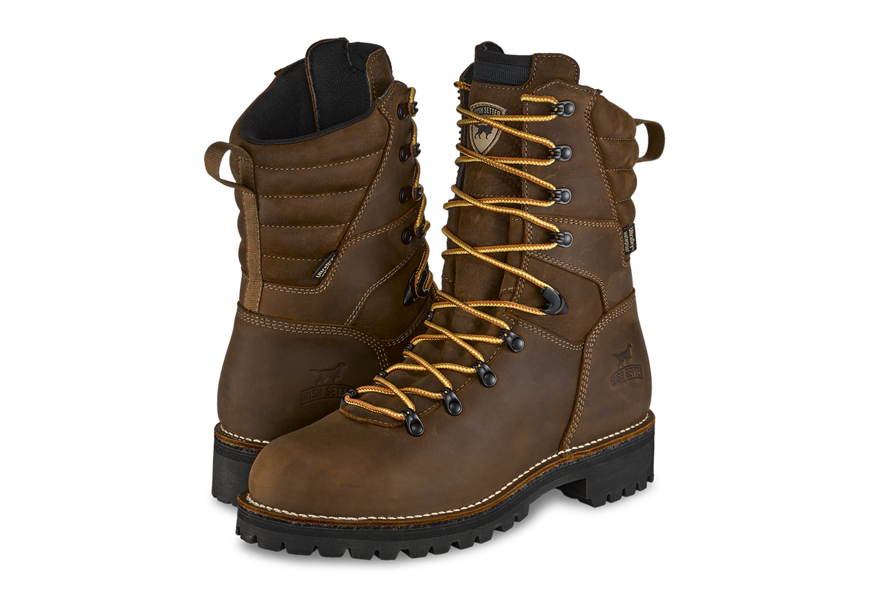 Irish Setter men's 9-inch waterproof leather soft toe boot. Waterproof leather upper boot with footbed provides instant underfoot support. Electrical Hazard and Slip-Resistant. Vibram outsole.