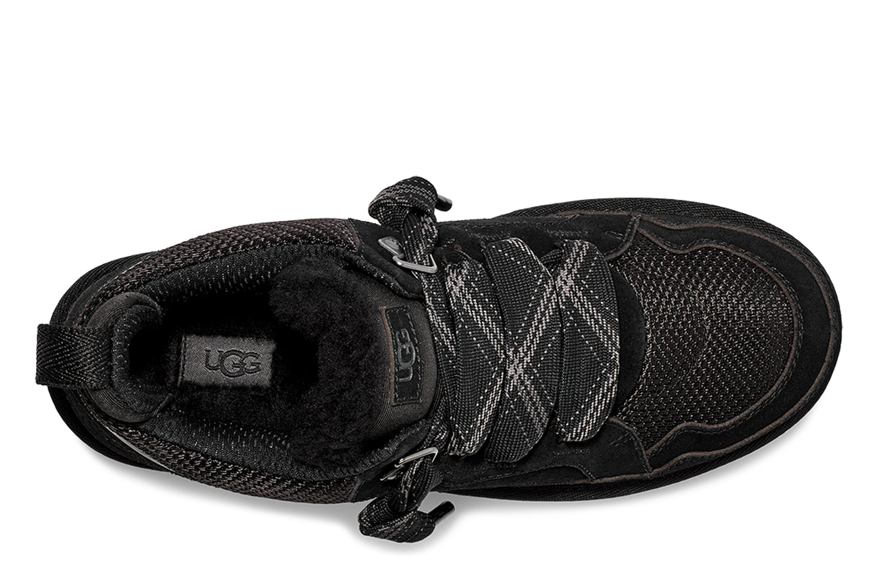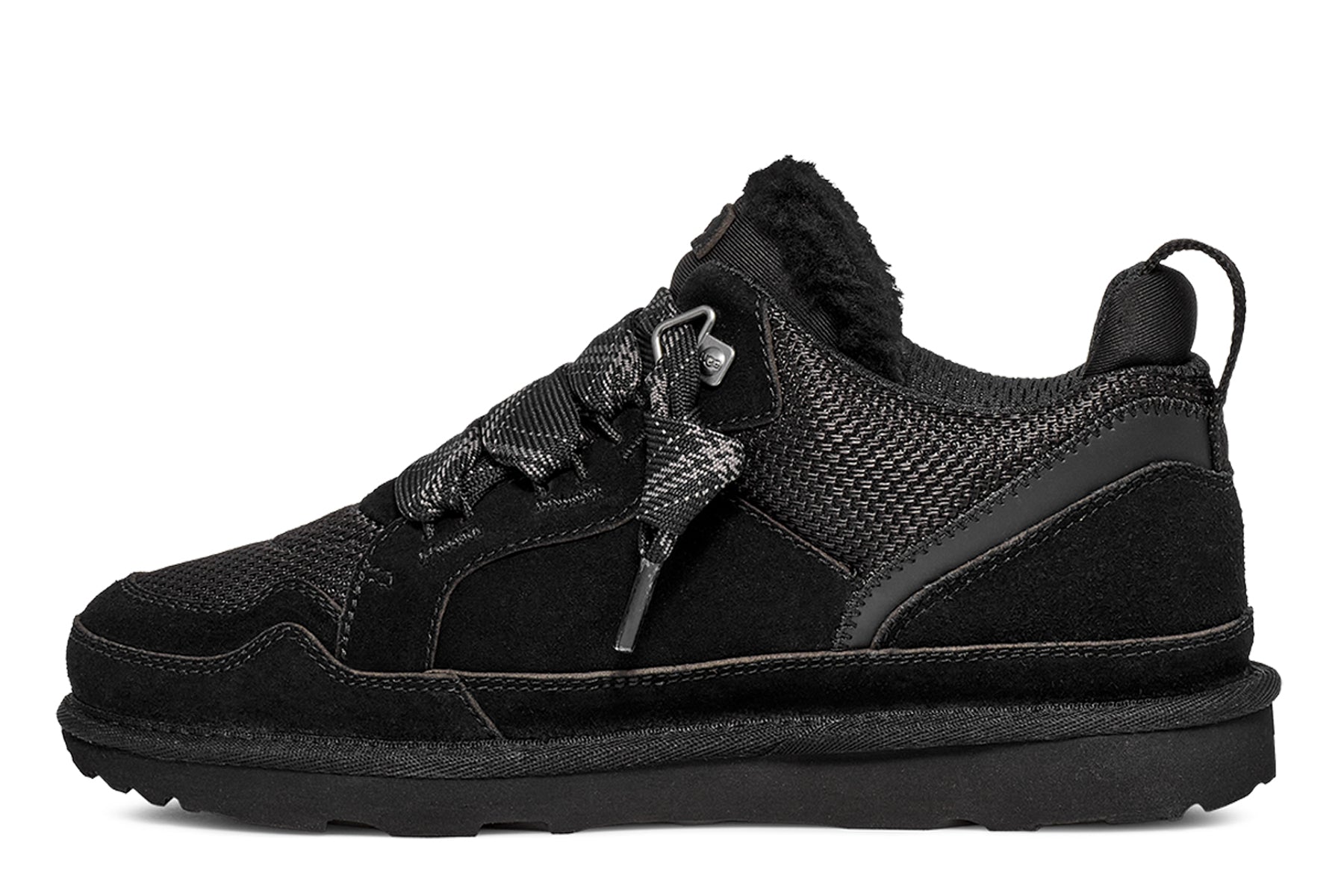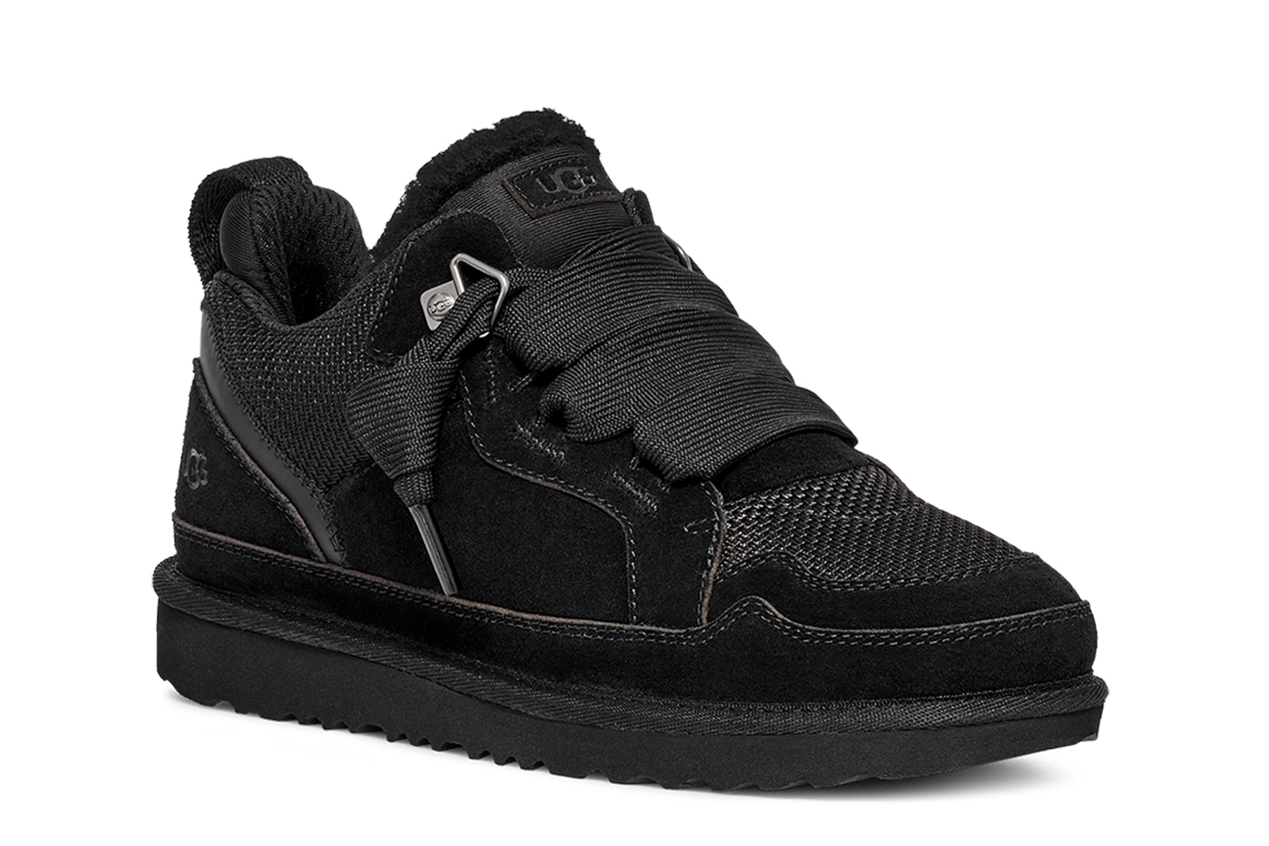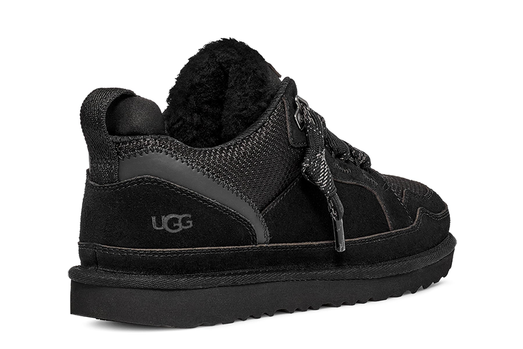UGG big kids Lowmel classic sneakers suede textile upper. UGG logo patch padded collar oversized tongue. Foam footbed and EVA outsole.