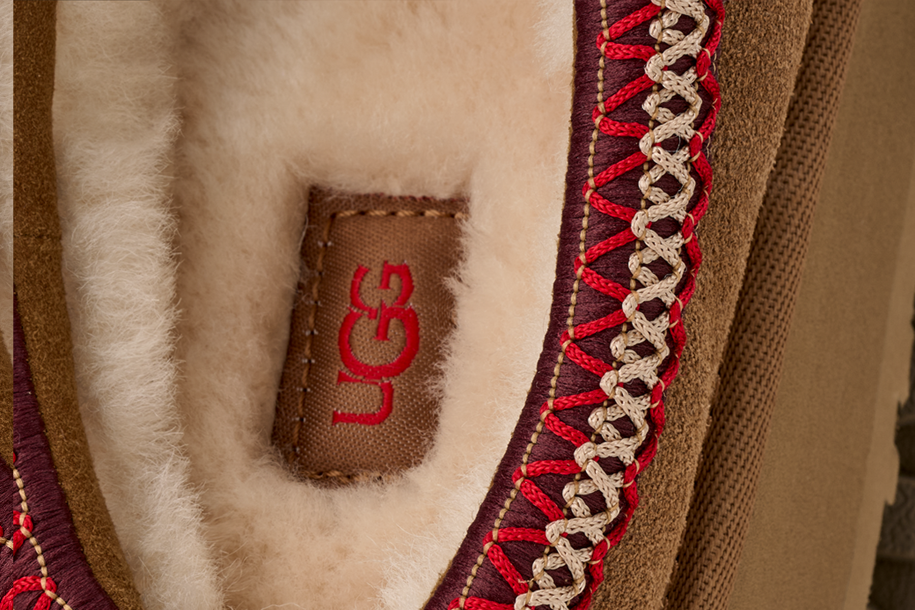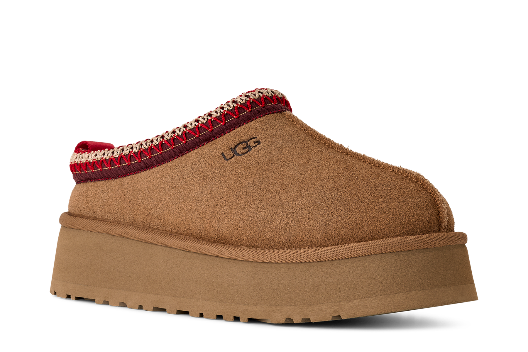 Ugg women's Tazz shoes slipper with platform sole for boosted cushioning and style. Suede upper and EVA outsole. Textile binding, 1.5" platform height and heat-embossed UGG logo.