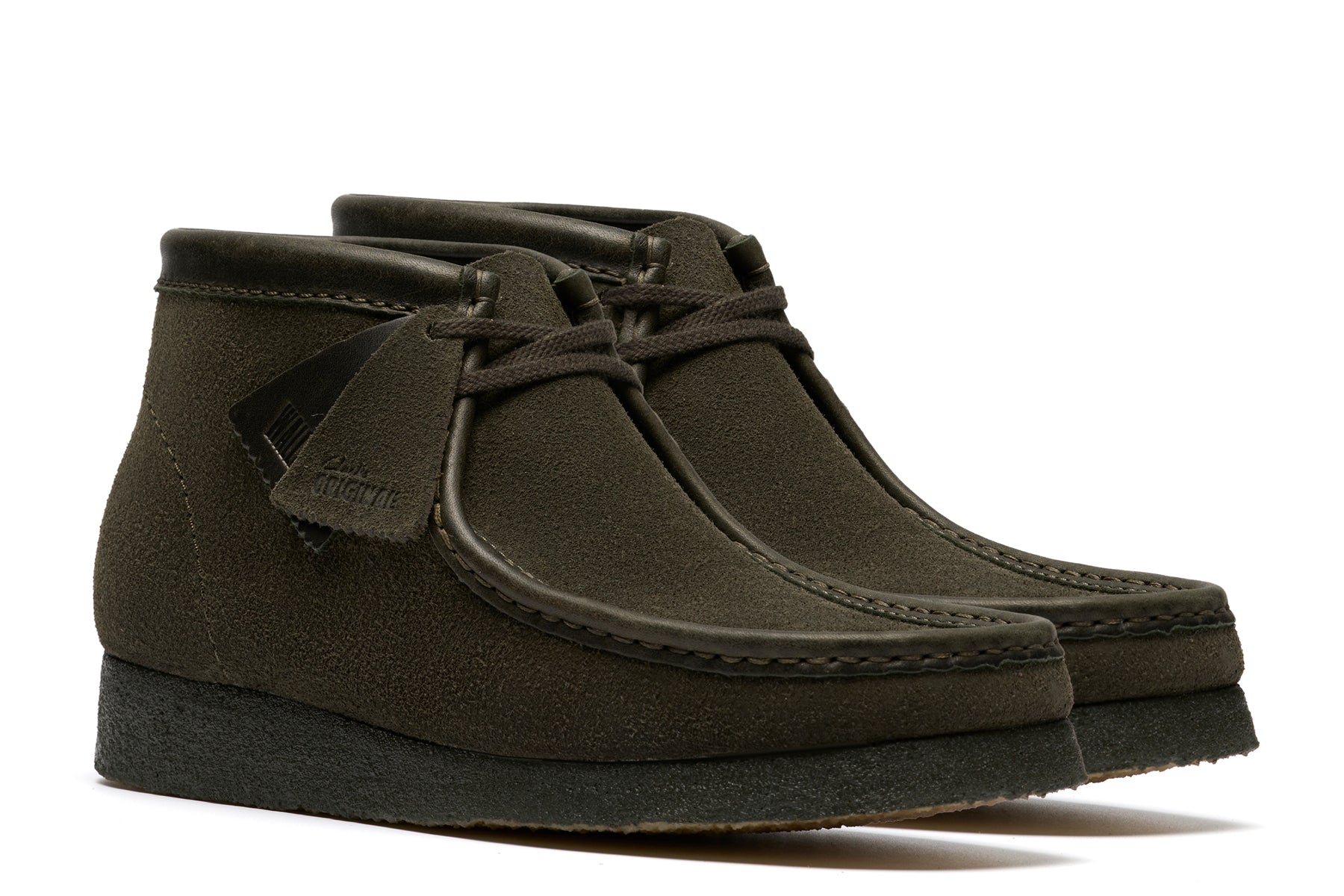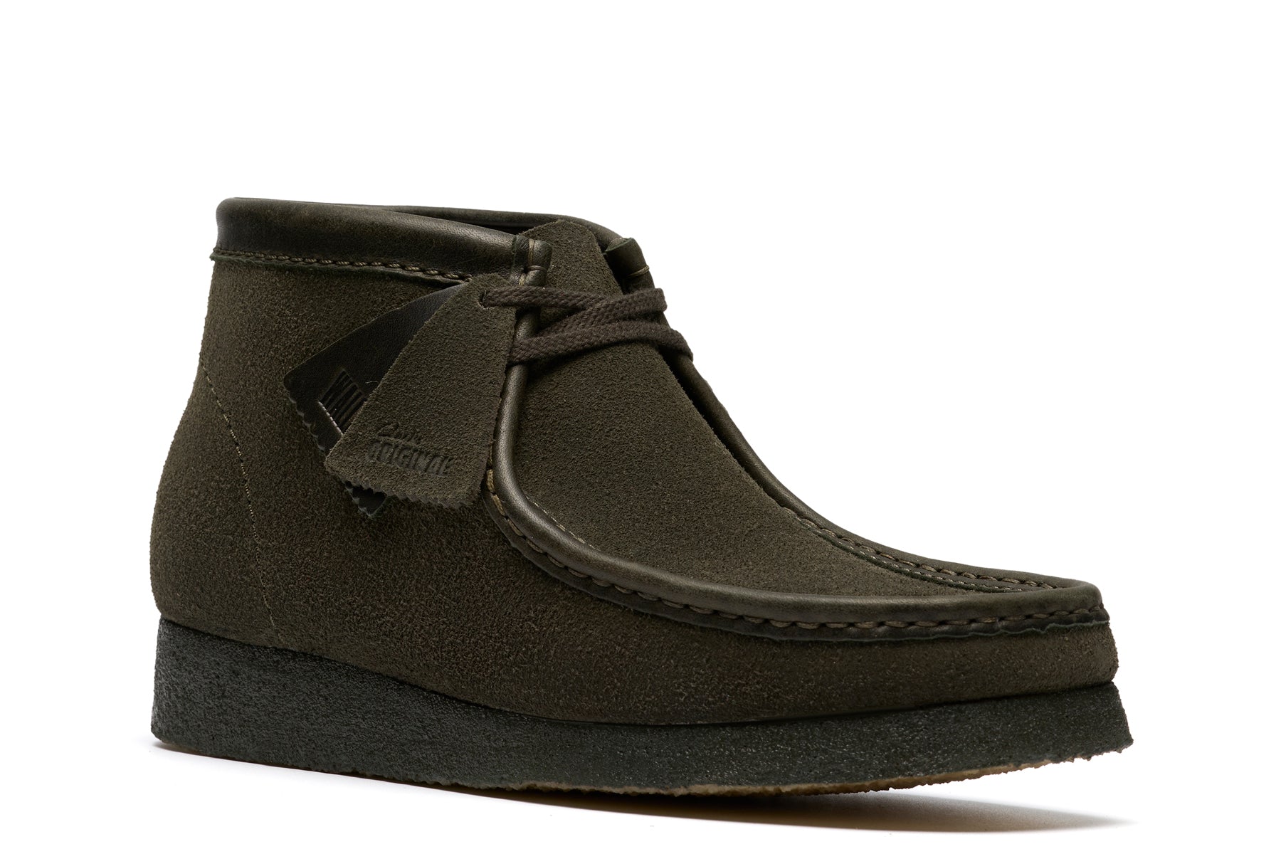 Clarks Originals Wallabee chukka boots features premium leather upper and flexible moccasin construction. Natural, renewable, forest Stewardship Council certified rubber crepe sole. Includes extra laces sets. Imported. Style number:26182750
